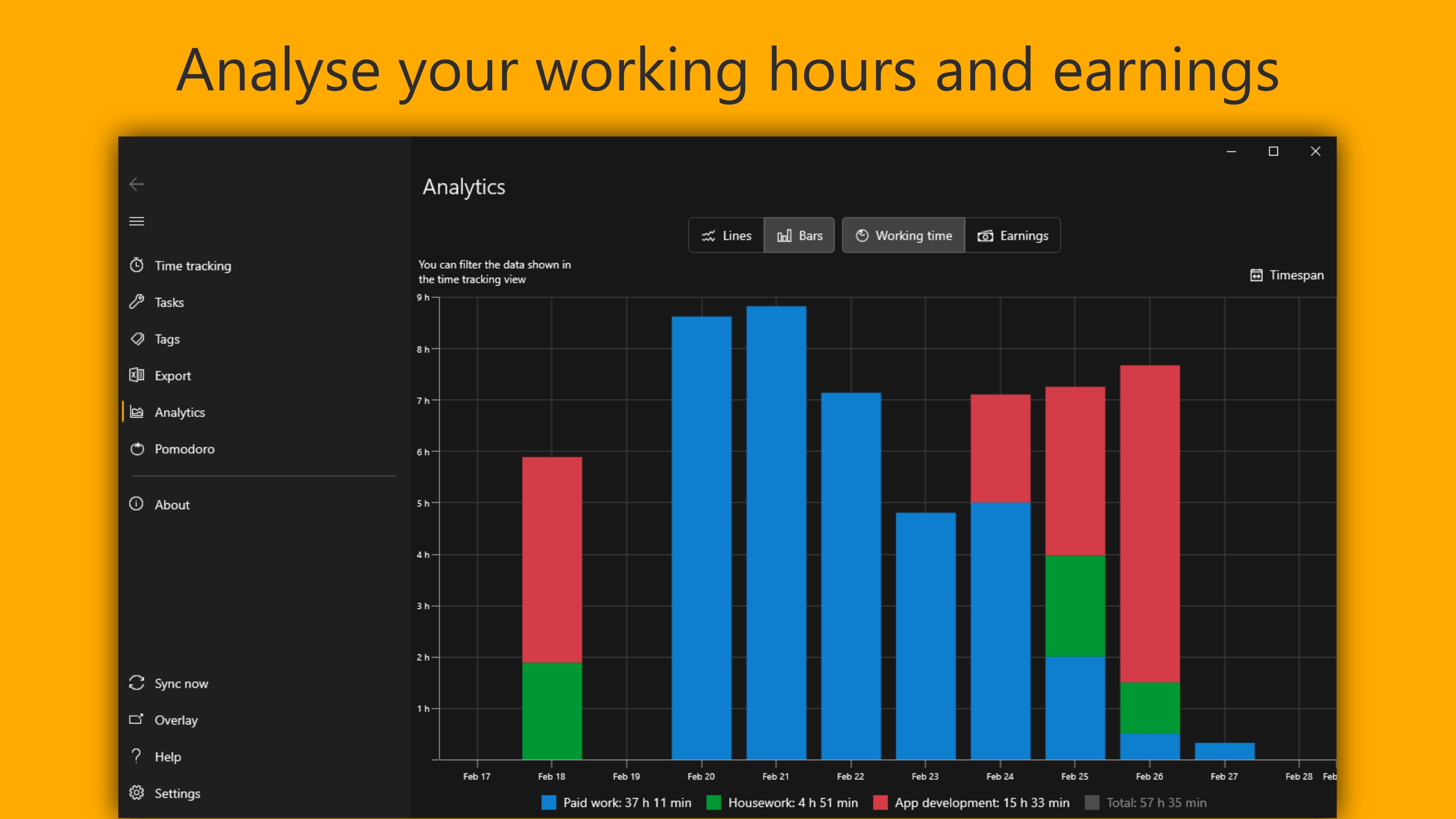Clockify 100 Free Work Timer from clockify.me You want to keep track of your own working times or the working times of a whole team? Mobile work hour tracker apps can be used both in and out of the office to record time for one (or multiple) projects. Clockify works great for anyone who bills by the work hours, no matter if you're a consultant, freelancer, or an independent contractor. Accessible as a portable application like mobile app, hours permits you to keep a running list of clocks and rapidly switch between your assigned tasks. Simple work hours tracker and timer app. It's easy to keep track of projects or types of work through its tagging system, understand. If your employees track time worked by project or client, they can track hours worked and assign it to the appropriate revenue stream on their mobile device. Establishing a centralized system for tracking data makes it easier for employees and management keep up with work hours.